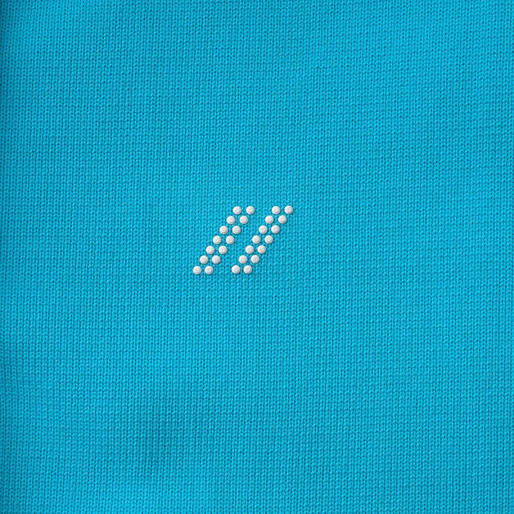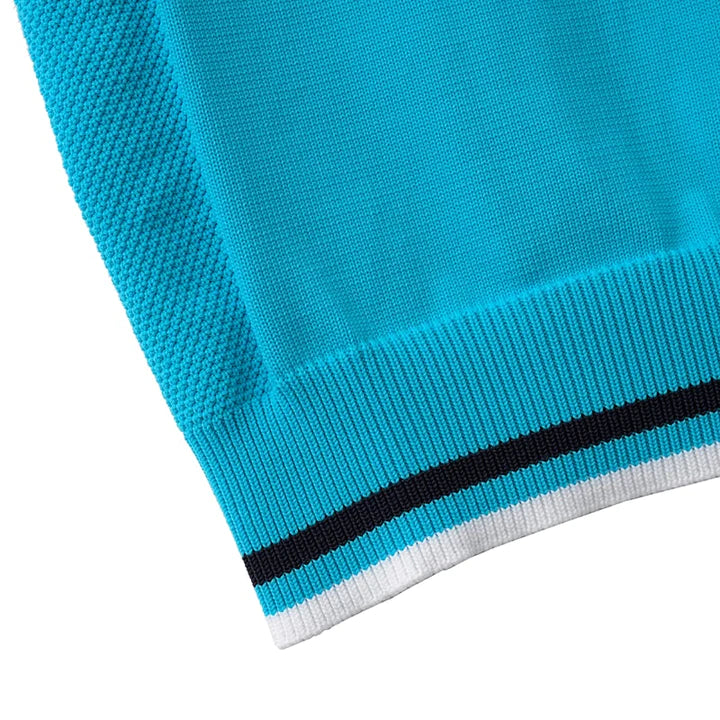 軽量でストレッチ性のあるウォッシュブルニット素材。ニットならではの背面ロゴと脇のカノコ素材がポイント。袖口と裾の2色ラインがアクセントに。